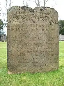 - A wall monument to Robert Sidney, 4th Earl of Leicester (1649–1702) and the nine of his 15 children who died before reaching adulthood. This is by William Stanton and William Woodman.[3] On a pedestal, two children who reached the age of six are shown as dancing angels with large wings, holding out their hands to balance an urn. Infant heads in the clouds above are titled with the names of the Earl's children. The monument was commissioned and its words set by his wife, Lady Elizabeth Egerton, who outlived her husband by what she describes on the memorial as "seven tedious years".