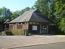 The chancel was rebuilt in the 19th century,[8][9] and a vestry was added on the northwest side.[3][12] Minor restoration work was carried out in the 20th century. A blocked window, discovered in the north wall of the chancel, was found be an original Anglo-Saxon window.[8][13] The former side-chapel on the north side was discovered during excavation work in 1918.[10] The lychgate at the entrance to the churchyard was built in the early 1920s by Philip Mainwaring Johnston[14] and serves as Clayton's war memorial. A Falklands War casualty is commemorated, and there is also a military grave from that conflict in the churchyard, where American theatrical producer Marc Klaw is also buried. To commemorate the Millennium, new stained glass was inserted in the west window of the nave; the design received considerable praise.[5]