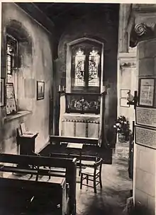 The oldest surviving feature of the present church is possibly the semi-circular head of the arch between the nave and the chancel, although the date of this uncertain. One theory is that it dates from 946. The brick may have come from a Roman site in the immediate vicinity of Sandridge or from Verulamium; the abbots of St. Albans are known to have had a stockpile of Roman brick, which was one of the materials used in the fabric of the abbey.[2]