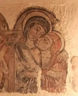 The church has a single nave, covered with a barrel vault and finished by a semicircular apse. The apse vault begins as a simple-impost cornice, and is separated from the nave by a triumphal arch. At its rear is a single narrow window, vaulted with a voussoir arch. It still contains some of its original Romanesque murals.[3]