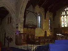In 1921 a war memorial was erected by the side of the lychgate; it takes the form of a Celtic cross and records the names of 48 people of the parish who were killed in conflicts in the 20th century. In the early 1950s thieves stole an amount of lead off the church roof and the ensuing flawed repairs done with asphalt sealed in damp and led to problems with dry rot in the roof timbers. The timbers and roof slates were replaced throughout the 1960s. However the problem returned in the nave roof and the church had to be closed temporarily on 1 May 1974, with weddings and burials being moved elsewhere. Financial aid from the Diocesan pastoral committee enabled the damp problems to be addressed and the church re-opened.[3]