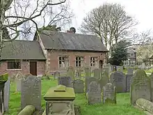 The south-west of the churchyard included an access to St. Mary's Grammar School until the churchyard was remodelled in 1837, with the entrance moved to the southern side because of vandalism to the windows and gravestones.[5]: 17 The school was first endowed by Bishop Sherbourne in 1520 and rebuilt by Sir Edward Mosley, 2nd Baronet in 1640.[5]: 17 It closed as a school in 1909 when a council school was opened in the village, and is now used by various village organisations.[5]: 17 : 22 The former school was granted protection as a grade II listed building on 26 March 1986.[11] The churchyard as a whole is listed as a scheduled monument.[5]: 64
