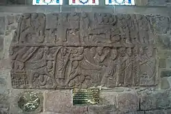 The church is notable for its Anglo-Saxon carvings, and a large Anglo-Saxon coffin lid which was discovered under the chancel floor near the sanctuary in 1820. It is now mounted on the north wall of the nave. It appears to date from the second half of the 7th century.[4][3] The church is also noted for containing an Anglo-Saxon carving of a lead miner, "T'owd Man", the oldest representation of a miner anywhere in the world. It was moved here in 1863 from Bonsall church for safe-keeping and has never been returned. The parishioners of Bonsall have had a replica carved for their church.[5] The church also contains numerous early medieval and medieval carvings, many fragments of larger pieces, that have been grouped together and inserted for display in the transept walls. These include fragments of early medieval stone crosses and medieval grave slabs, figures of a wise man and shepherd, and the face of a bearded man.[3]