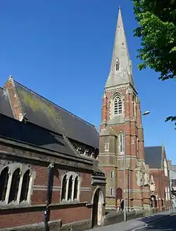 St Mary Magdalen's Church[note 1] is a Roman Catholic church in the Montpelier area of Brighton, part of the English city of Brighton and Hove. Dedicated to Jesus' companion Mary Magdalene, it is one of six Roman Catholic churches in Brighton and one of eleven in the city area. Built by ecclesiastical architect Gilbert Blount in a 13th-century Gothic style to serve the rapidly expanding residential area on the border of Brighton and Hove, it has been listed at Grade II by English Heritage in view of its architectural importance. An adjacent presbytery and parish hall have been listed separately at Grade II.