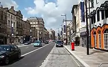St Mary Street (Welsh: Heol Eglwys Fair) and High Street (Welsh: Heol Fawr) are major commercial streets in the Castle Quarter of Cardiff city centre, Wales, which form a major thoroughfare running south from the gatehouse of Cardiff Castle. High Street begins at the junction of Castle Street on the A4161 and ends at the junction of Church Street and Quay Street, from where St Mary Street begins until the roundabout at Callaghan Square on the A4160.