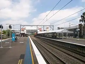 St Marys railway station is a heritage-listed former goods yard, railway signal box and now railway station located on the Main Western line in the western Sydney suburb of St Marys in the City of Penrith local government area of New South Wales, Australia. The station is served by Sydney Trains T1 Western line services. The station marks the end of the four-track section of the Main Western line. It was designed by New South Wales Government Railways and was built in 1862. It is also known as St. Marys Railway Station Group and St Marys Railway Station. The property was added to the New South Wales State Heritage Register on 2 April 1999.[2]