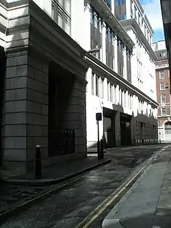 In the 1860s a proposed unification of the benefice of St Edmunds with St Nicholas and that of St Mary Woolnoth with St Mary Woolchurch Haw [6] was vigorously defended by St Nicholas Acons' discrete churchwardens.[7][8] In 1964 the churchyard was excavated and important Saxon remains found,[9] but in the last decade of the 20th century Gordon Huelin noted that only a City Corporation commemoration at the site of the old parsonage remained to indicate a church had ever been there.[10]