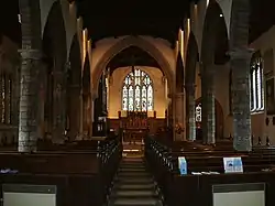 ![]() The interior of St Olave's church, facing east | |