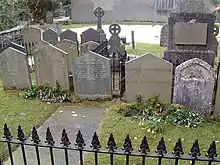 In the southeast corner of the churchyard is a group of twelve graves surrounded by railings. These are the graves of members of the Wordsworth and Quillinan families, and are listed at Grade II*.[12]