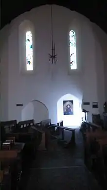 Between 1111 and 1117[68] the ancient clas church was granted by Gilbert fitz Richard to St Peter's Abbey, Gloucester (a Benedictine house),[69] as a cell or priory of St Peter's Abbey. This may have meant the construction of a stone church, perhaps the first on the site; a new tower and porch were built.[70] It is not clear whether the Celtic monks and priests (married and single) were expelled, or whether they were joined by brethren of a new sort.[71] A few years later, in 1141, Ewenny Priory, in the Vale of Glamorgan, was founded as a priory of St Peter's Abbey, Gloucester. As with Llanbadarn, there was a pre-existing church, in this case definitely one in stone, and probably dating from the 1120s, as it was consecrated 1126 by Bishop Urban of Llandaff.
