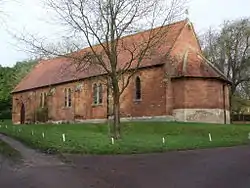 The CHURCH OF ST PAUL in the garden of the Vicarage is of 1845 architect unknown, red brick with an apse and lancet windows.