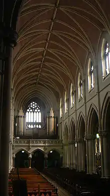 The pipe organ, dating from 1910, is originally a Magahy instrument.[3] The instrument was majorly rebuilt and refurbished between 1947 and 1949 by the Conacher organ company. At this time it was a very highly-regarded instrument. In 1952, Jeanne Demessieux gave a recital here.