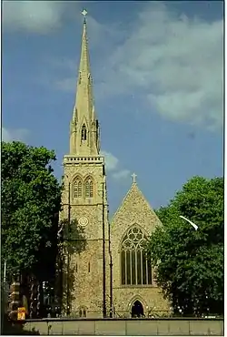 St Saviour's is an Anglo-Catholic church in Pimlico, City of Westminster, London, England, located at the north end of St George's Square. It was constructed in the 1860s as part of Thomas Cubitt's development of the area on behalf of the Marquess of Westminster.[1] The church was designed by Thomas Cundy, who had previously built St Gabriel's Pimlico a short distance away. As with St Gabriel's, St Saviour's was designed in the Gothic style and built in ragstone to emphasise the contrast with the classical stucco of its secular neighbours. The church is Grade II listed.
