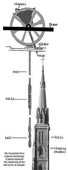 Ringing tower bells requires training for several months. The bells swing through a full 360° so that they can be rung in a specific order. The ringer must control the swing of the bell so that they ring in the correct place. Bellringers do not ring by a musical score but by numbers. Special sequences can be rung so that every combination of the bells are rung.