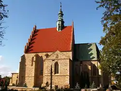 Saint Sigismunt Church in Szydlowiec is a church that was built towards the close of the Gothic period (the church constitutive act dated January 1, 1401) and is an example of the Late Gothic hall church. The exterior is of local sandstone. The late-Gothic silhouette of the church does not prepare a visitor for the impression made by its Renaissance interior colorful polychromy.