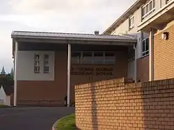 The original school was built in the 1950s, and at the end of the 2001/2002 school year the original building was demolished to make way for a new one. During the rebuilding works staff and pupils were temporarily based at Woodside School, close to the city's Anderston area. The new facility consists of the Abbey Building and the Mitre Building, and was built as part of Glasgow's PPP school building programme. The new building was completed in 2003[2] and the school was officially opened on 3 December 2004 by the then Education convener of Glasgow City Council, Steven Purcell, a former pupil. The new school is one of the largest Roman Catholic schools in the city and has a capacity of over a thousand pupils.