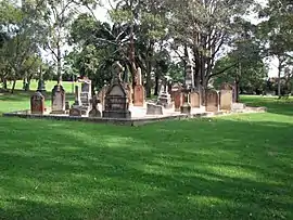 The cemetery contains one Commonwealth war grave, of an Australian Army officer, Capt. Richard Gordon Dibbs [4] The Park contains the headstones of thirteen members of four generations of the Dibbs family, the oldest being Sophia Elizabeth Dibbs, born in Sydney in 1809, and mother of George Dibbs. (grandson of George Dibbs, below) of World War II.[5]