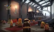 The game contains a central hub level, the Royal Train Station, and four additional levels that the player travels to through the Train Station. Each level was designed with a number of puzzles that allowed the player to approach in any order, while keeping the level size small and uncomplicated to prevent the player from becoming lost.[10] Most of the puzzles have been designed with multiple solutions; Petty stated they wanted to cater to both the casual player, who may only want to find one of the solutions to progress in the game, and the more dedicated player, who would likely spend time to discover all of the intended solutions.[10] This was furthered by allowing the player to freely roam through previously-completed areas to complete all the puzzles, including after completing the main story.[10] The puzzles and challenges were designed to be able to be completed in short segments, giving the player more freedom to play it at their own pace.[11] Petty wanted to make sure the player had time to contemplate the puzzles or explore the environment in a manner of older adventure games, though still assured that his environments felt alive and animated.[11] The levels themselves are designed using a mix of the Great Depression and Victorian era designs, using virtual household items such as marbles and safety pins, an inspiration that came from interest in dioramas and miniature stages.[5][7] The game itself presents cutscenes with dialog in the fashion of early silent films, where a text plaque is shown to show the dialog after it is acted out and scene takes place on a theater stage.[7]