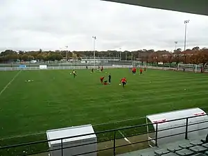 The complex's main stadium, with a seating capacity of 2,164 spectators, was one of PSG's main grounds until 1974.[1][2] That year the club moved into the Parc des Princes.[3] The stadium — as well as the other artificial turf and grass football pitches of the complex — hosts training sessions and home matches for the club's male and female academy sides.[1]
