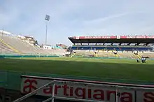 The stadium falls short of UEFA competition standards and therefore would not be allowed to host UEFA Champions League or UEFA Europa League matches. The reason for this is the inadequacy of this stadium's facilities. For example, the seats' backrests, which must be at least 30 cm high are below the requirement by 15 cm in some areas of the ground.[18] Such an improvement would require an investment of at least €1,500,000.[19] As well install new seating, the dressing rooms, medical facilities and west stand would require renovation. The cost of these measures means the likely host of any European fixtures played by the club would be Modena F.C.'s Stadio Alberto Braglia.[20]