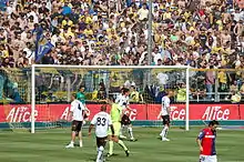 The Italy national team does not have a national stadium and many different venues are used by its teams at all levels. One of these venues is the Stadio Ennio Tardini, although it cannot currently be used for competitive games due to the inadequacy of the seating. This led to the moving of the Italy-Estonia match to the Stadio Alberto Braglia in Modena, which took place on 3 June 2011.[18] It has not been chosen as a host stadium in any of the major tournaments that Italy has hosted to date: the 1934 World Cup, Euro 1968, Euro 1980 and 1990 World Cup, but it was on the provisional list for the failed Euro 2016 bid, despite failing to make the failed Euro 2012 bid list.[10][21] In September 2020, Moldova's UEFA Nations League game against Kosovo was held at the stadium as Moldova does not recognise Kosovo.[22]
