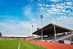 The new £6.5 million stadium opened in 2011, featuring a 'Grade A' rugby and football pitch which is to international standard, as well as a 'Grade A' Athletics Track. The stadium now has the potential to host events for up to 15,000 spectators. However its common use for football and rugby, means it normally holds up to 6,080 though the 2,580 capacity grand stand and terracing for a further 3,500.[8] The installment of floodlights and team changing facilities, means the stadium has the capability to broaden their events to other sporting activities and night time kick offs.