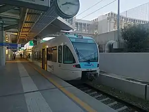 In Greece, there are two similar classes of Stadler GTW trainsets, namely the 560 (standard gauge) and the 4500 (metre gauge), which are operated by TRAINOSE and are part of OSE rolling stock. These are suburban DMUs with two coaches, of type G.T.W. 2/6, which were built by a consortium of Stadler, Bombardier and Hellenic Shipyards[1][2] and were put into operation by OSE, between 2003 and 2004. The trainsets are either standard (560 class) or metre gauge (4500 series), but with the same technical characteristics (capacity, speed, appearance, manufacturers, power supply and number of coaches). They can be coupled in multiple coupling with up to three railcars (composition of 9 coaches together with the drive vehicles).[3]