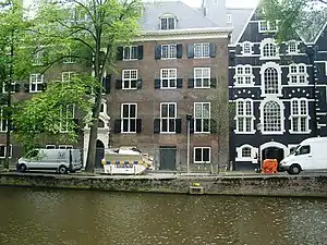 The bank was built in 1614 as a conversion of an old warehouse used by the poorhouse O.Z. Huiszittenhuis that had been used to store peat for the inhabitants.[1] In 1658 the poet Joost van den Vondel became a clerk there. He worked a total of 10 years for the bank and his "bank chair" has been kept.