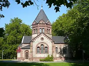 Due to the growing population of Göttingen in 1879 Mayor Georg Merkel decided to create a new cemetery at the city limits at Grone, today a suburb of Göttingen. The first section, which covered an area of 7.5 acres (3.0 ha), was inaugurated in December 1881, and replaced the Albanifriedhof as a burial site. The cemetery chapel was designed by city architect Heinrich Gerber during the first expansion of the cemetery around the turn of the century. This was the first of five expansions, the last of which was in 1963. In 1975 the town burial site was moved to the newly created Parkfriedhof Junkerberg. Since then, only existing burial rights are allowed at the Göttingen City Cemetery. A redesign of the site to a park has been repeatedly discussed, but has not yet been done.[1][2]