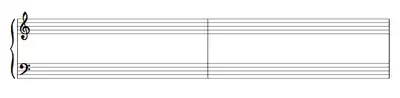 Grand staff. Some manuscript paper is pre-printed with notational elements such as system brackets, braces, clefs, bar lines, and instrumental designations.