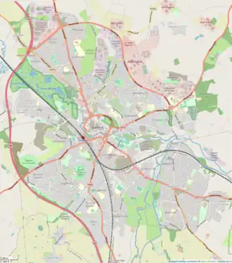 Stafford (/ˈstæfərd/) is a market town and the county town of Staffordshire, in the West Midlands region of England. It lies about 15 miles (24 km) north of Wolverhampton, 15 miles (24 km) south of Stoke-on-Trent and 24 miles (39 km) northwest of Birmingham. The town had a population of 71,673 in the 2021 census,[1] It is the main settlement within the larger borough of Stafford which had a population of 136,837 (2021).[2]