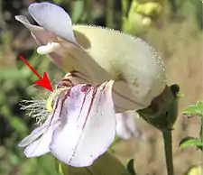 In botany, a staminode is an often rudimentary, sterile or abortive stamen, which means that it does not produce pollen.[1] Staminodes are frequently inconspicuous and stamen-like, usually occurring at the inner whorl of the flower, but are also sometimes long enough to protrude from the corolla.