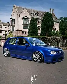 The stance of a vehicle is determined by its suspension height and the fitment of the wheels in the fender arches. It may refer to any vehicle, including sports cars, pickup trucks and off-road vehicles, however it is mostly associated with lowered sports cars, sedans, hatchbacks, vans and other body styles of passenger cars. The term stance is most commonly associated with the stanced car subculture, a style of modifying cars which emphasizes lowering cars, typically with either coilovers or air suspension, and often adding negative camber to the wheels to achieve the "stanced" look. The main parameters of the vehicle's stance are suspension height and position of the wheels. Suspension height usually depends on the suspension components while wheel position usually depends on the rim size and offset. Tire fitment also plays a big role from both visual and functional perspective.