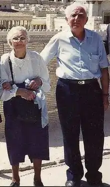 ![]() Emilia Słodkowska with Samuel Lederman (Szmuel Liderman) at a ceremony in Jerusalem, 1985 |