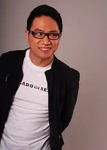 ![]() Stanley Chi wearing a t-shirt with his iconic statement, "Suplado is the new Sexy" | |