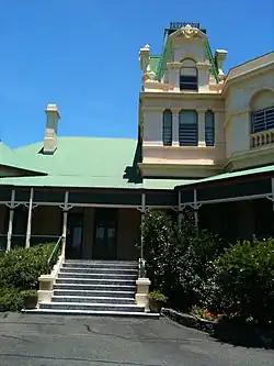 In the early 1920s, Blume subdivided and sold off the bulk of the property, and in 1926 the house, on 4.5 acres of land, was sold to the Order of the Sisters of the Presentation in Queensland for £22,000. The Presentation Sisters operated a convent and primary school (St Rita's Convent School) on an adjacent site and converted Stanley Hill into a boarding school and secondary school for girls in September 1926.[2][3] In subsequent years the school expanded, with the first new building erected in 1939. The attached, single-storeyed kitchen and service wing was demolished in 1968 to make way for a new classroom block, and the coachhouse and stables no longer survive. None of the post-1926 structures is included in the entry in the Heritage Register.[1]