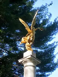 - Carillon Tower - 98 feet (30 m) high tower, inside there are 25 English bells, 61 Flemish carillon bells, an electric organ; tower has two bronze doors with 14 relief sculptures on them