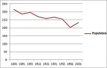 The population has fluctuated over the years, and decreased from its all-time high in 1861 by 46%. This is similar to in other rural villages, as many villagers have migrated to cities/large towns searching for work and better jobs. The increase of residents by 14.9% from 1961 to 2001 is an indicator of counter urbanization and peoples desire to live/retire in the 'rural idyll'.