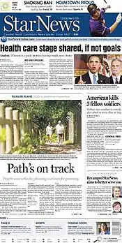StarNews is an American, English language daily newspaper for Wilmington, North Carolina, and its surrounding area (known as the Lower Cape Fear). It is North Carolina's oldest newspaper in continuous publication.[2] It was owned by Halifax Media Group until 2015, when Halifax was acquired by New Media Investment Group.[3] New Media merged with Gannett in 2019, and the combined company took the Gannett name.[4]