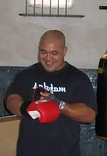 Star "The Rock of Niue" Tauasi sparring Owen Parry