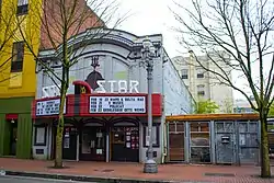 It opened in May 1911 as the Princess Theatre at Sixth and Burnside Street with 300 seats.[1] It was one of many "semi-fireproof picture show[s]" that opened that year in Portland and the first in Downtown Portland to comply with the new fire codes.[1] It was being run by the Sax Amusement Company circa 1923; it became the Star Theater in 1939, but was also known as the Star Burlesk, 4 Star Theater or New Star Theater at various times.[1]