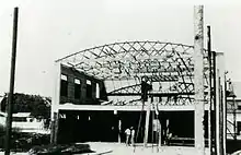 The partially open air theatre was built by Snell and Gordon, the company of well-known Darwin builder Harold Snell, in the 1920s. The theatre's design was innovative at the time, in particular the roof structure, which Snell had studied in England.[1] Only the rear rows at the back and upstairs dress circle was covered by a roof.[2] The stage was on wheels to be moved for boxing matches[3] and the floor was concrete in anticipation of future roller-skating events and social dances.[4] It could seat 860 people.[5]