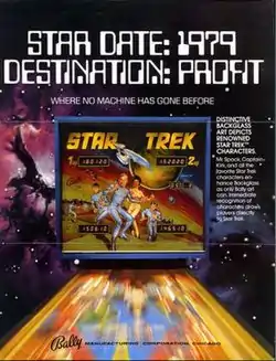 Star Trek is a 1979 pinball game developed by Bally. It was the first pinball machine based on the franchise of the same name. A second pinball machine of the same name was released in 1991 by Data East. A third pinball machine of the same name was released by Stern Pinball in 2013.