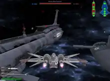 In Hero Assault, players control iconic Star Wars characters which are divided into two teams, heroes and villains. The sole objective is to be the first team to reach the number of required points, with each kill granting one point.[7] Space Assault allows players to control a starfighter in order to destroy critical systems on the enemy's capital ship or destroy other enemy starfighters for points.[4] The systems of an enemy capital ship can be destroyed in a starfighter by firing at key areas of the ship. Alternatively, players can land in the enemy hangar and sabotage critical systems internally. The game ends when one team has reached the required number of total points.[7]