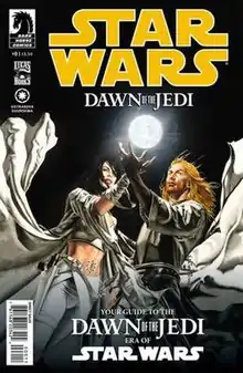 Star Wars: Dawn of the Jedi is an American comic book series set in the Star Wars universe. The series, published by Dark Horse Comics, is written by John Ostrander, penciled by Jan Duursema, inked by Dan Parsons, and colored by Wes Dzioba. It is set in the earliest days of the Jedi Order, beginning 36,453 years before the events of the original Star Wars film. A preview issue, #0, was released on February 1, 2012, and followed by the first issue on February 15, 2012.[1] Dawn of the Jedi ended after the third arc since Marvel Comics acquired the Star Wars comic license in 2015. The miniseries concluded with the last issue, Force Wars #5, released on March 19, 2014.