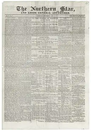 ![]() Front page of The Northern Star and Leeds General Advertiser, 1837 | |