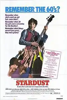 Stardust is a 1974 British musical drama film directed by Michael Apted and starring David Essex, Adam Faith, and Larry Hagman. It is the sequel to the 1973 film That'll Be the Day, which introduced the characters of Jim MacLaine and his street-smart friend Mike Menary. It chronicles Jim's rise and fall as an international rock star during the 1960s and early 1970s, with Mike as his personal manager. It features a number of pop/rock performers, including Essex, Faith, Keith Moon, Marty Wilde, Dave Edmunds, Paul Nicholas and Edd Byrnes.