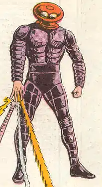 Starfinger was a helmeted figure with five different powers generated by each finger of his right hand. The Legion discovers that Starfinger is actually Lightning Lad, controlled by Dr. Lars Hanscom. Hanscom, under the guise of examining Lightning Lad's robotic arm, had hypnotized the Legionnaire and outfitted him with the Starfinger glove, so that Hanscom could obtain the rare metal rejuvium by threatening to destroy the "Seven Wonders of the 30th Century". Hanscom was brought to justice, but later escaped prison and attempted a solo criminal career.[1] His most notorious crime was kidnapping one of Duo Damsel's bodies during her wedding to Bouncing Boy.[2][3] He later tried as "Doctor Larsh" (Lars H.) to use Lightning Lad again on the eve of the birth of the Legionnaire's twins, but was easily defeated.