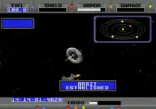Aliens may be cautious, friendly, or hostile, and all have distinctive speech patterns; the player can influence alien reactions by arming weapons and shields or hailing the aliens with varying communication styles.[14][22] Alien ships can be also scanned for information.[18] Combat involves maneuvering the ship and firing weapons, either instantly damaging short range lasers or avoidable, but more powerful long range missiles.[12] The weapon used depends on how far away enemy ships are and what the player's ship is armed with.[23] The player's ship has ablative armor and regenerative shields,[12] and can take damage to its hull and individual components.[23]