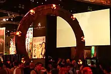 The first teaser trailer for the game was released on March 5, 2005.[69][70] The game was first shown at E3 in May 2005, with attendees able to play a level from game in both the Namco and JoWood booths.[71] Stargate SG-1 star Richard Dean Anderson appeared at the event in order to promote the game.[72][73][74] The full trailer released was released at E3 and made available online days after the event.[75][76] A featurette which included footage of the game and interviews with the Perception team was included on the Stargate SG-1 Season 8 Volume 43 DVD, first released in July 2005.[4] In order to tie the video game into the show, the shows producers planned to either show or mention the encounter with the Haaken in an episode.[11][44][55]